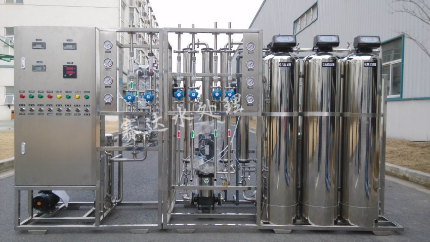 原水→原水加壓泵→多介質過濾器→活性炭過濾器→軟水器→精密過濾器→一級反滲透主機→中間水箱→中間水泵→EDI系統→微孔過濾器→用水點