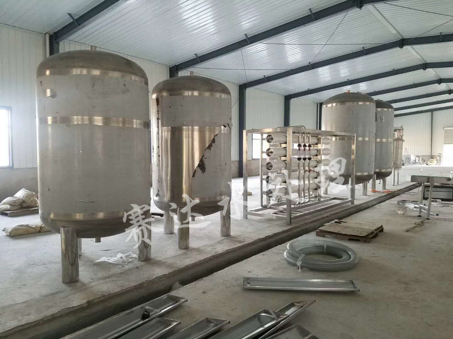 2、預處理系統一般包括原水泵、加藥裝置、石英砂過濾器、活性炭過濾器、精密過濾器等。其主要作用是降低原水的污染指數和余氯等其他雜質,達到反滲透的進水要求。