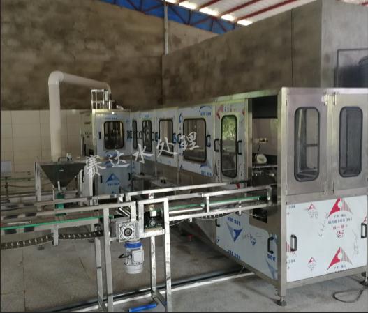 桶裝水生產線設備組成:自動拔蓋機、自動外洗桶機、自動上桶裝置、進/出桶輸送、桶裝水灌裝機、自動上蓋機、桶蓋在線消毒機、燈檢設備、自動套標機、蒸汽縮膜機、激光噴碼機、自動套袋機、碼垛機。